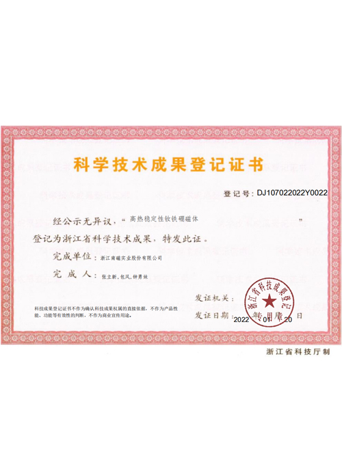 Registration Certificate of Scientific and Technological Achievements